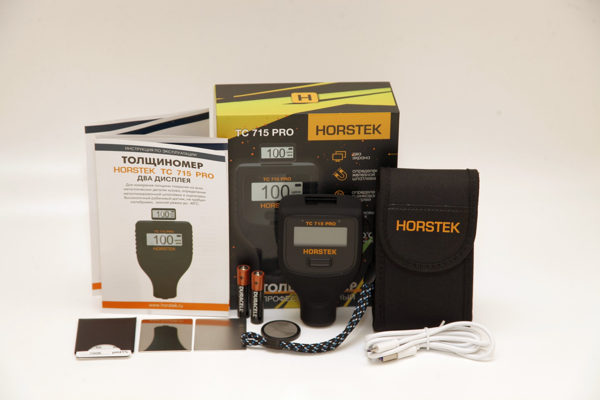 Профессиональный толщиномер Horstek TC 715 PRO - это новая модель 2026 года и передовое поколение, использующее самые современные технологии и мощные компоненты (2-х ядерный процессор, 24BIT аналого-цифровой преобразователь, рубиновый датчик, два дисплея LED + OLED и др.).